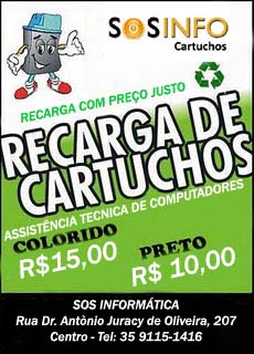 ap. R$ 90,00; Efetuamos a recarga de toners coloridos HP Laserjet e Samsung CLP;